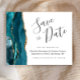 Este elegante orçamento salve a data card apresenta uma cor d'água azul lacrimejada, borda cortada com falso brilho dourado. O texto personalizável combina o script de escrita manual de cinzas de carvão, o copperplate e as fontes itálicas em um fundo branco. O verso apresenta um design de chaleira e de agata dourada.