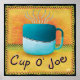 Esta vibrante design de café apresenta uma caneca de dois tons contra um fundo laranja e ouro em greve, acentuado por uma borda ousada de diamante preto e vermelho. . Qzik Art
