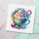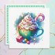 Cartões de Natal personalizados. Uma bonito representação aquática de uma xícara branca de chocolate quente coberta de chantilly e borrifadas com uma bengala doce.