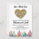 Celebre o seu amor pelos tacos e o seu casal de casado com este divertido e moderno convite à aquarela. Perfeito para um chá casual e festivo, este design apresenta uma ilustração lúdica de taco com um recheio em forma de coração, rodeado por vibrantes salpicos de aquarela. Personalize o convite com seus nomes de casal, data do chá, hora e local.