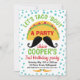 O convite de aniversário de fiesta deste rapaz brilhante e colorido apresenta um grande taco e bigode num fundo branco com pontos azuis claros à volta das margens do design. O verso do convite apresenta um padrão que consiste nos pimentos dos tacos e pimentões. Este convite é certamente para marcar a cena de uma festa de aniversário colorida. Para mais designs, visite a loja. A festa ou o taco de vamos deste rapaz está pronto para ser personalizado.