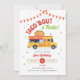 Este convite colorido é perfeito para celebrar uma festa de aniversário com um tema taco ou mexicano. Ele apresenta uma ilustração com um caminhão de comida taco, um banner de bandeira e um confete. As palavras "taco" sobre uma fiesta completam esta design festiva e colorida.