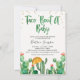 Festa colorida, em sua maioria esverdeada, temia taco sobre um convite para chás de fraldas de bebês apresentando cactos floridos, um taco e alguns pontos de ouro falsos. Ideal para alguém procurando por um taco neutro de gênero ou um convite para o chá de fraldas temático de fiesta.