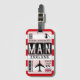 Esta mala vermelha e branca de Manchester certamente o ajudará a localizar suas bolsas no carrossel. Esta marca de código de aeroporto MAN inclui igualmente informações aeroportuárias autênticas.