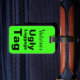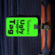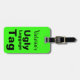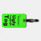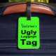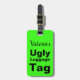 Esta etiqueta verde neon diz "Etiqueta de bagagem feia" com uma área para personalizar a etiqueta com o seu nome.