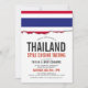 Uma bandeira da Tailândia escreveu um cartão de convite branco limpo para o próximo evento temático da Tailândia. Um item de excelente a ser usado para um evento de cozinha de comida, chá de panela, festa de noivado ou churrasco de seleção de comida especial.