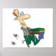 Este design é um alfaiate. O alfaiate é carregando tecido e parece frenético. Este design de alfaiate parece excelente neste Poster