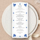 Este cardápio do casamento de talavera é inspirado pela bela arte do azulejo e do folk encontrada no México e no sudoeste americano. A cor azul ousada e a tipografia clássica criam um olhar elegante que é moderno e tradicional. Este belo cardápio é perfeito para o tema mexicano ou para a recepção do casamento de destino.