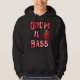 Um design de esboço digital com tambores e esqueleto que tocam tambores e fontes selvagens.