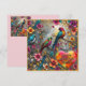 Pássaros brilhantes, flores e um coração, celebram o aniversário da Tammy. As saudações no cartão são "Feliz aniversário Tammy". Na parte traseira da placa está uma pequena versão da imagem frontal e muito espaço para escrever uma mensagem. Feito com o auxílio do AI Bing.