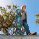Adicione um toque gráfico ousado ao seu skate com esta tampa de skate que apresenta um padrão geométrico vibrante em roxo, turquesa e amarelo. Inspirado pela arte pop divertida e formas abstratas, este design é perfeito para skatistas que amam pranchas únicas, coloridas e chamativas.