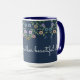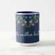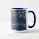 Na moda grande caneca de café com um padrão floral doce, o fundo azul com o padrão pode ser mudado para qualquer cor para ir com a decoração de casa ou de casa. O texto pode ser personalizado para qualquer mensagem ou o texto pode ser removível.