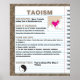 Esse produto é projetado para estudos sociais em salas de aula, especialmente aquelas que cobrir a história global. A design descreve informações fundamentais sobre o Taoismo. Este poster pode ser impresso para ser usado como guia de estudo pessoal