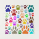 Imagens de estampas de pata de cachorro por toda parte. Design de estilo de desenho colorido.