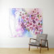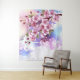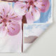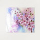 Articulação artificial, ramo de cor-de-rosa, cereja floresce sobre fundo picturesco, texturizado, pintado com tinta branca, rosa e azul. Pink Sakura