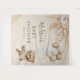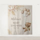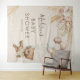 Tapeçaria boêmia de chã de bebê com urso, apresentando um fundo marrom claro, um urso de bebê menino em aquarela vintage, balões, grama pampas rústica boho e flores, além de um modelo de texto moderno fácil de personalizar.