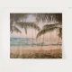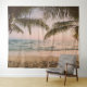 Tapeçaria personalizada de alta definição apresentando uma praia tropical relaxante com palmeiras. Ideal para criar um ambiente relaxado, arte única para paredes, fundo para cabine de fotos ou fundo para reuniões.