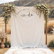 Este pano de fundo de fotos do casamento apresenta uma fonte escura escrita à mão e um design moderno minimalista com uma simples combinação de cores preto e branco. Edite facilmente as cores para atender às necessidades do seu evento e adicione nomes e datas para um toque pessoal.