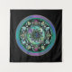 Tapeçaria Mystical celta verde da parede da mandala. Uma estrela clássica deu forma à mandala do fractal connosco celtas e símbolos mystical nas máscaras do verde azul da cerceta e do aqua, com bocados do roxo do ouro e da lavanda. Há uns caráteres chineses para a paz, o amor e a felicidade e uma variedade de nós celtas e símbolos mystical, nós de um Triquetra, da trindade, e o sinal para a infinidade.