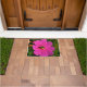 Este tapete de porta tem uma fotografia de uma flor com uma abelha.