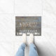 O presente de acampamento rústico bonito da decoração do rv para rvers, casais aposentados, e campistas personalizados, doormat de madeira afligido do olhar leu os campistas felizes em vista escrita à mão, letras brancas com um modelo do texto para adicionar o nome de família abaixo em letras lunáticas. Com uma beira bonito, branca na parte inferior do motorhome RVs do vintage e os pinheiros. Contra um fundo real da foto da madeira rústica, afligida que é scarred e velha. O excelente acopla o presente da aposentadoria, demasiado. Seja direito em casa na frente de um rv ou de uma cabana rústica de madeira acolhedor.