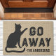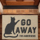 A Tendy Engraçada Sai da Porta de Gato com o Fundo de Burlap Modern Faux. Mala projetada personalizada com as palavras "Afaste-se" escrita em uma fonte legal de tipografia negra. Este tapete engraçado para amantes de gatos irá certamente encantar todos os hóspedes que o encontram.