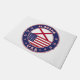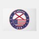Crachá do Alabama com bandeira do Alabama e bandeira dos EUA, cores, forma arredondada. Emblema do Alabama. Selo do Alabama. Coleção dos Estados Unidos.