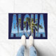 Greet them with a tropical Hawaiian greeting of ALOHA with this beautiful door mat featuring tropical palm trees of Hawaii within the text "ALOHA." Background is a deep blue. The photo was taken on the island of Maui, in the town of Lahaina looking toward Molokai. Photography and design ©by T.K. Goforth, all rights reserved.