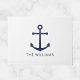 Matriz de porta náutica minimalista moderna com âncora azul marinho com nome personalizado no estilo de fonte sans moderno azul marinho em fundo branco. Perfeito como decoração da casa de praia, presente de inauguração e muito mais.