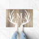 A casa da quinta denominada e aperfeiçoa o doormat temático dos cervos para uma família outdoorsy/caça! As silhuetas brancas dos antlers dos cervos cercam seus letra e nome completo personalizados do monograma da família em um fundo de madeira do impressão das pranchas do celeiro do falso! Este doormat igualmente faria um grande presente para recentemente weds ou proprietários de casa novos!