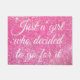 APENAS UMA GAROTA QUE DECIDIU IR POR ELA FALAR a porta rosa quente com brilho púrpura com elegante escrevendo branco.
