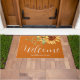 Esta porta personalizada apresenta um design floral vintage. O fundo é uma elegante cor de laranja queimada com ouro de girassol de cor d'água. Um delicado buquê selvagem é ilustrado no topo, com a saudação de boas-vindas e o nome da família impressos abaixo.