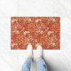 Porta em um Art Nouveau, fantasia padrão floral subaquático de algas marinhas graciosas, folhas e flores, baseado num design têxtil William Morris, melhorado digitalmente e colorido em laranja de coral pastel e médio sobre fundo laranja de coral profundo / tangerina