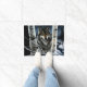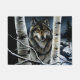 Lobo solitário no inverno espiando entre duas árvores poplares à noite