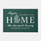 A porta na moda "Bem-vindo à nossa casa" apresenta um design de tipografia com o mapa do estado de Michigan. Personalize com o monograma do sobrenome da sua família e o nome da sua cidade. As cores verde e branca podem ser personalizadas.