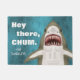 Seus visitantes fugirão com medo quando virem sua porta de Excelente de Tubarão Branco. O tapete tem um tubarão desenhado à mão com dentes pontiagudos abundantes, nadando ao longo de um fundo azul/oceano verde com bolhas e as silhuetas esbatidas de peixes tentando escapar. O texto diz, "Ei, chum" com espaço para o seu nome familiar. Aproveite este tapete de porta que vem em dois tamanhos. DICA: Você também pode "personalizar/personalizar" se quiser editar ou reorganizar o resto do texto. Você também pode mover e redimensionar o tubarão.