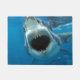 Assuste seus amigos e inimigos com este tapete de boas-vindas de tubarão faminto nadando das profundezas do oceano para dar uma mordida em qualquer um que ouse ficar em seu caminho.