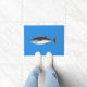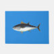 Este doormat do tema da pesca de mar profundo é decorado com uma ilustração dos peixes de atum do bluefin. Este o esporte icónico e os peixes comerciais podem alcançar pesos de quase 1500 libras. O atum de Bluefin é associado com a pesca de mar profundo, a pesca comercial, e as comunidades litorais. O atum de bluefin atlântico e pacífico é encontrado em muitos dos oceanos e dos mares do mundo.