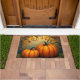 Duas grandes abóboras sentam-se sobre uma superfície de madeira. Folhas de outono e galhos torcidos rodeiam-nas, criando uma cena cômica de outono.