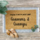 Não há lugar como Gramms & Gramps personalizados doormat de boas-vindas apresenta fonte preta de script. Personalize o texto para seus nomes, se quiser.