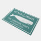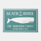 A porta da casa da praia de uma baleia branca, de estilo costeiro, com o nome da família e a data estabelecida.