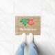 Mala de fundo de carne de bambu com flor de hibisco tropical e design de folha de monstera para sua casa, casa de praia ou cabana de tiki no quintal! Edite o texto do seu nome.