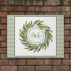 Estilo Elegante clássico Greenery Wreath personalizado com monograma e nome. Fundo de faixa verde de sábado. Casamento perfeito ou presente de inauguração. Sage, Cream, paleta de cores verde escuro.