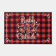 Esta porta festiva para os feriados mostra "Baby it's Cold Outside" em letra branca com floco de neve e sotaques estelares, e um design de borda de rolagem. Um padrão vermelho vivo e preto de verificação de xadrez de búfalos é incluído como fundo.