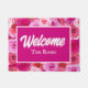 Tapete Bem-vindo à Entrada Personalizada com Flores Rosa