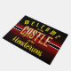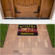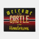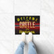 Este tapete de porta com tema de castelo ousado estabelece presença na porta com tipografia forte e estilo confiante.