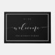 Bem-vindos aos seus convidados à sua casa com a sua própria porta personalizada de "Bem-vindo". O design apresenta um design mínimo e elegante com "Bem-vindo" exibido na elegante caligrafia moderna. As letras estendem-se a um design simples de borda dupla de quadros. Personalize com o nome da família e o número da casa.