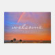 "Bem-vindo." Inspire-se enquanto você fortalece sua entrada com esta porta fotográfica de um arco-íris aninhado em um pôr do sol azul, rosa e laranja suavemente iluminado. Faz um presente de excelente para um amigo especial, ou mesmo para você mesmo! Você pode personalizar facilmente esta porta e eu também ofereço personalização em qualquer produto. Por favor, me mande mensagens com quaisquer perguntas ou solicitações.