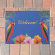 Tapete Bem-vindos com papagaios tropicais e flores de hib