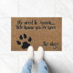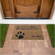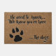 Saudação Personalizada - Mude Bem-vindo saudando sua própria textura ou mantenha - fibra de coco textura falsa - texto diz : Não precisamos bater sabemos que você está aqui ... os cachorros. Com um grande impressão de cão